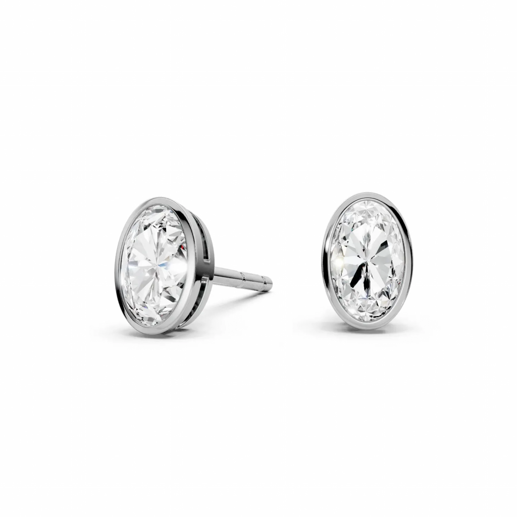 Secure Bezel Setting: The clean, minimal bezel setting protects the diamond’s perimeter while creating a seamless, polished metal frame. This unique setting style actually adds a subtle border to the diamond, which can further enhance the overall visual presence on the earlobe